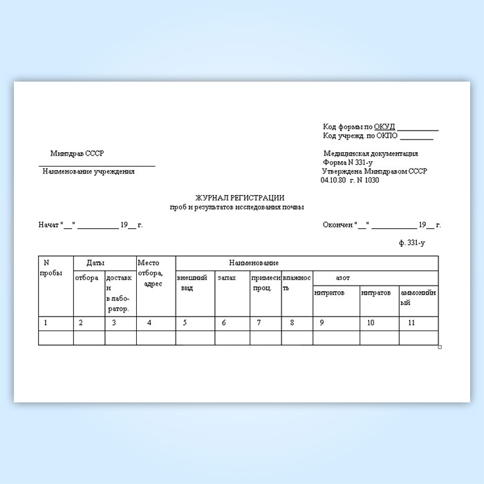 Журнал регистрации проб и результатов исследования почвы (форма № 331-у) в Чите купить