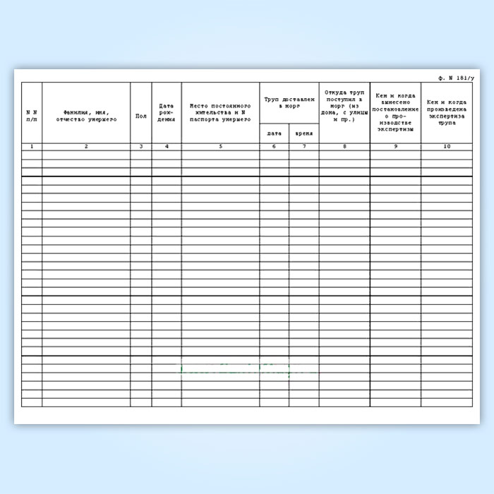 Журнал регистрации трупов в судебно-медицинском морге (форма 181у) в Чите купить