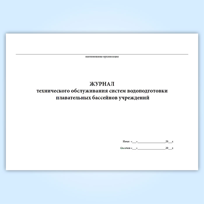 Журнал технического обслуживания систем водоподготовки плавательных бассейнов учреждений в Чите купить