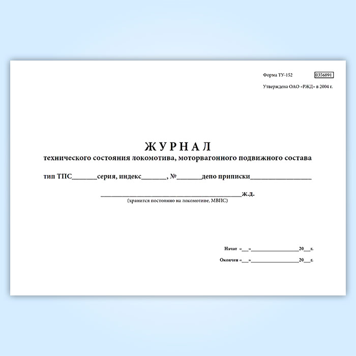 Журнал технического состояния локомотива, моторвагонного подвижного состава (форма № ТУ-152) в Чите купить