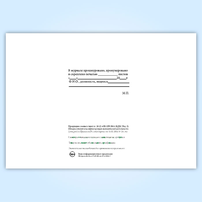 Вы получаете печатную продукцию прошнурованной и c местом для вашей печати в соответствии с действующими нормативными документами: