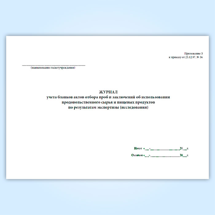 Журнал учета бланков отбора проб и заключений об использовании продовольственного сырья и пищевых продуктов в Чите купить