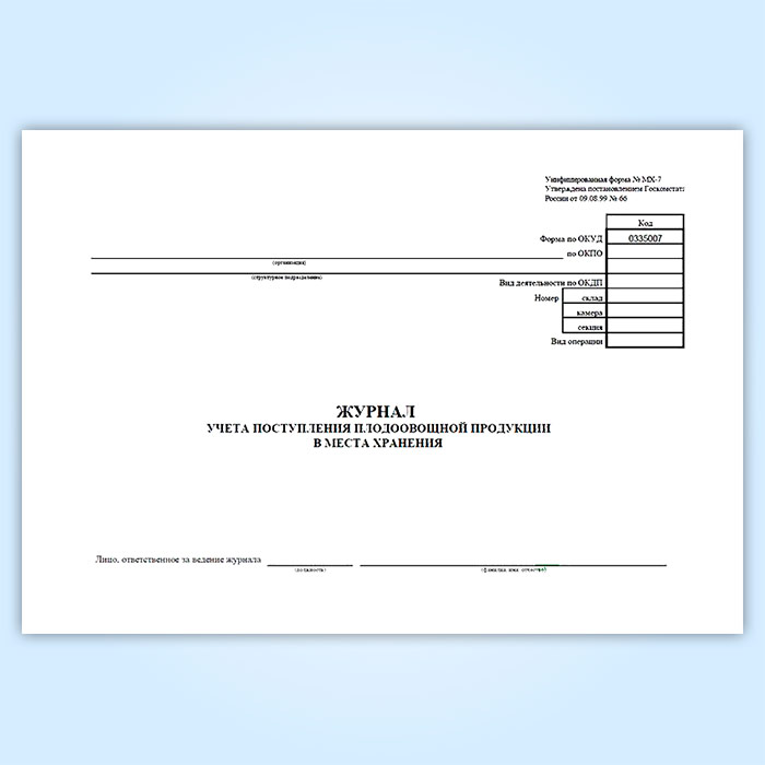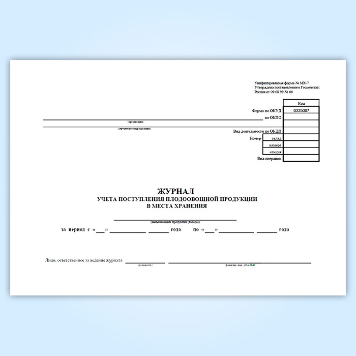Журнал учета поступления плодоовощной продукции в места хранения (форма МХ-7) в Чите купить