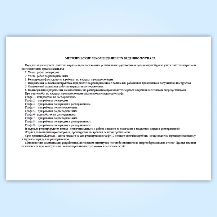 Журнал учета работ по нарядам и распоряжениям на тепловых энергоустановках в Чите купить
