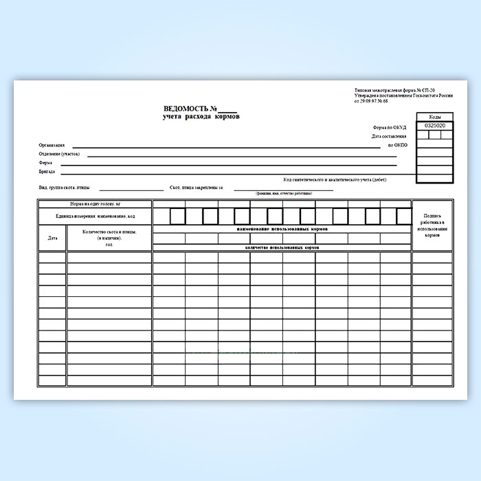 Журнал учета расхода кормов (форма № СП-20) в Чите купить