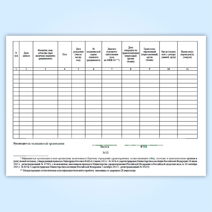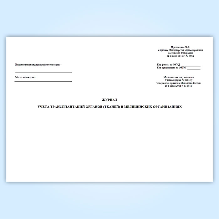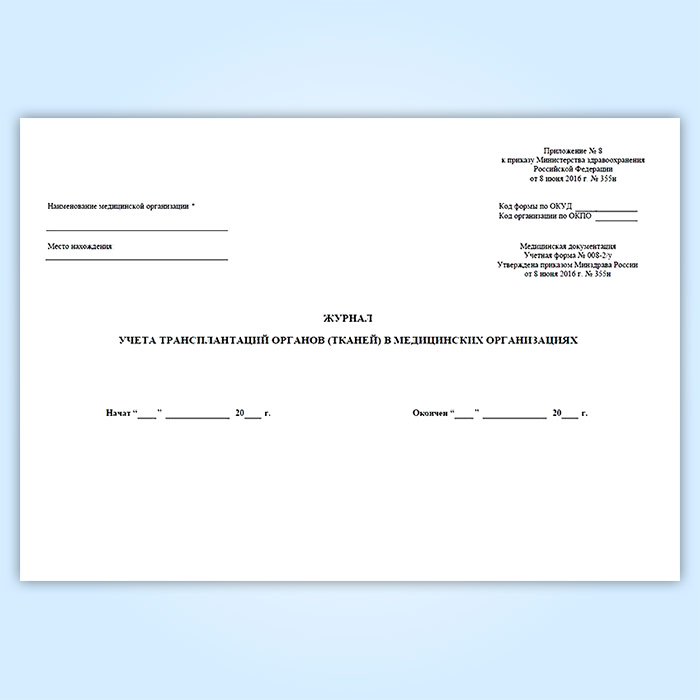 Журнал учета трансплантаций органов (тканей) в медицинских организациях (форма № 008-2/у) в Чите купить