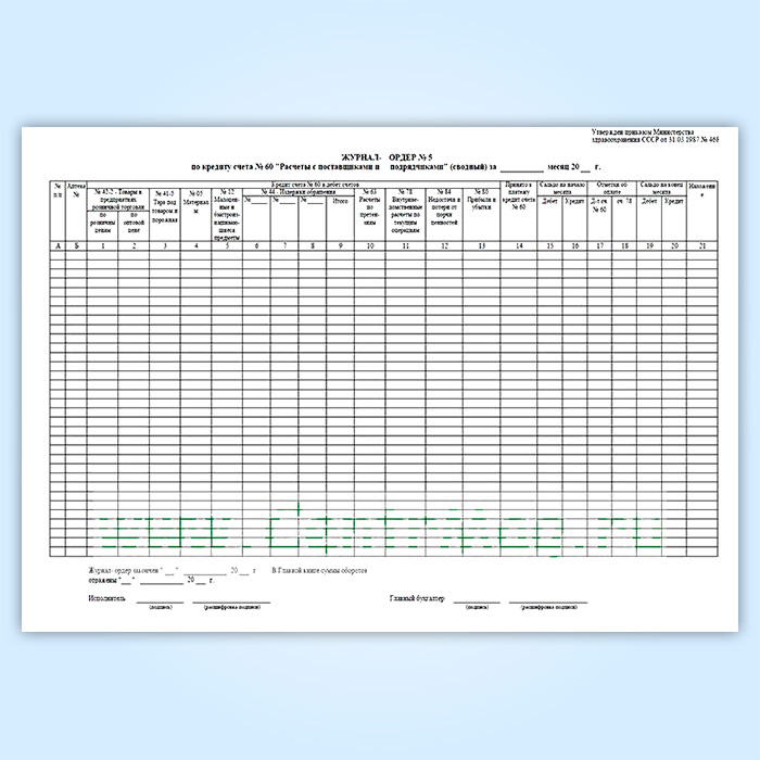 Журнал-ордер № 5 по кредиту счета № 60 «Расчеты с поставщиками и подрядчиками» (сводный) в Чите купить