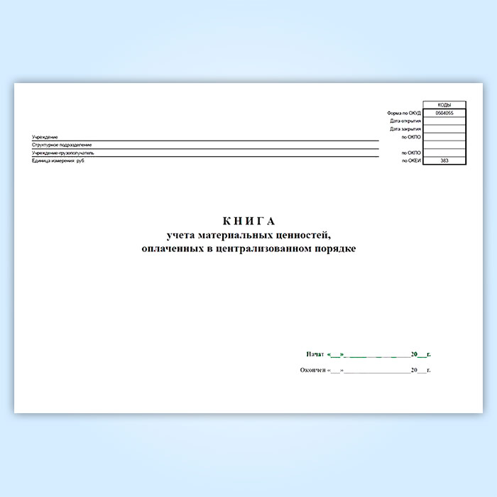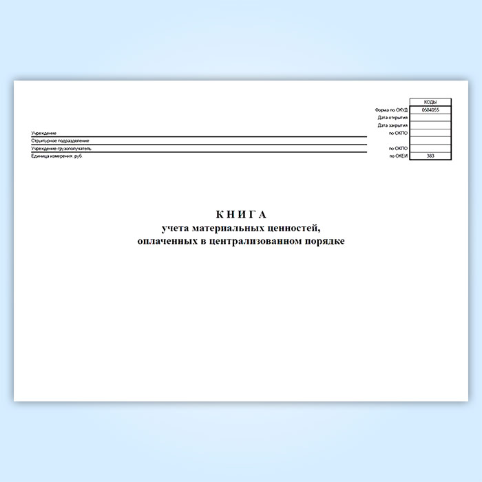 Книга учета материальных ценностей, оплаченных в централизованном порядке (код формы 0504055) в Чите купить