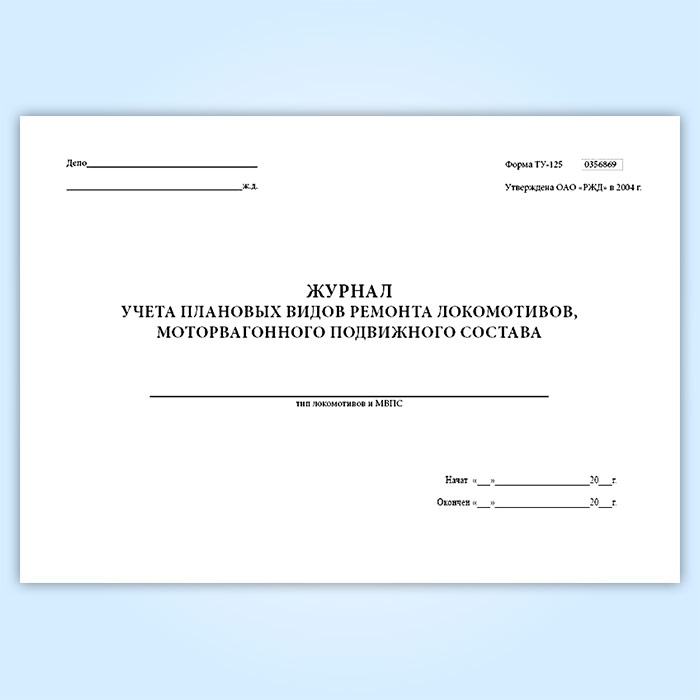 Книга учета плановых видов ремонта локомотивов, моторвагонного подвижного состава (форма ТУ-125) в Чите купить
