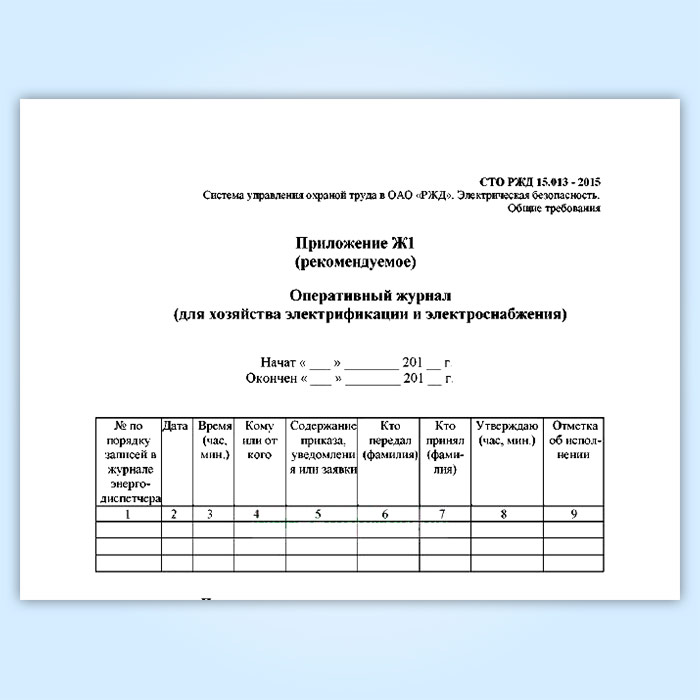Оперативный журнал (для хозяйства электрификации и электроснабжения) (СТО РЖД 15.013-2015) в Чите купить