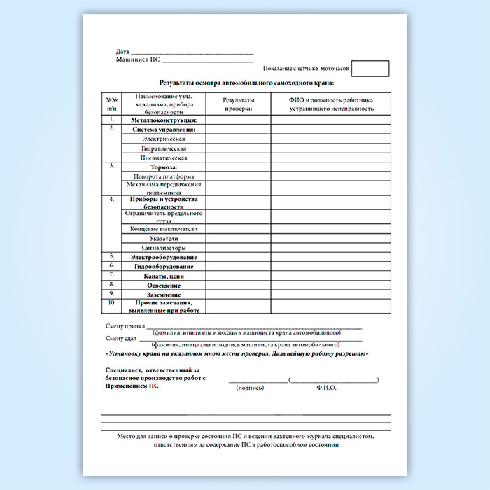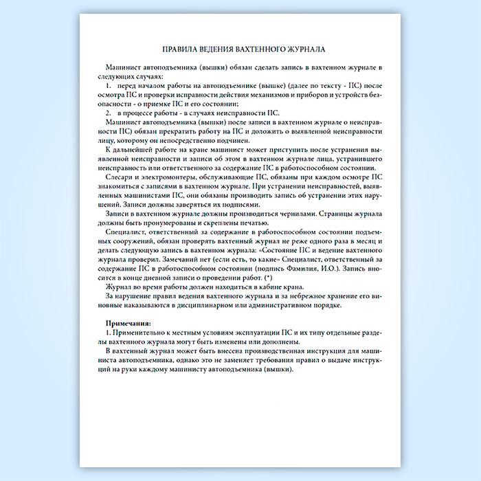 Вахтенный журнал машиниста автоподъемника (вышки) в Чите купить