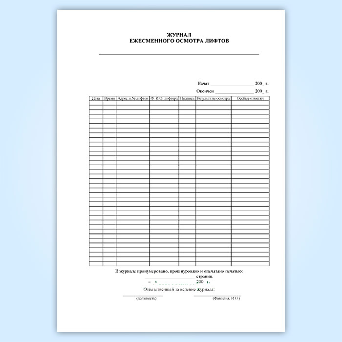 Журнал ежемесячных осмотров лифтов в Чите купить