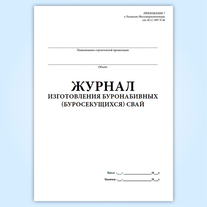 Журнал изготовления буронабивных (буросекущихся) свай в Чите купить