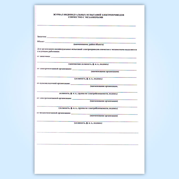 Журнал индивидуальных испытаний электроприводов совместно с механизмами в Чите купить