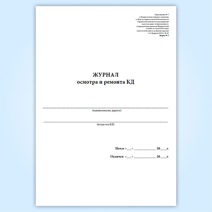 Журнал осмотра и ремонта канатной дороги. Несущий канат (форма № 1) в Чите купить