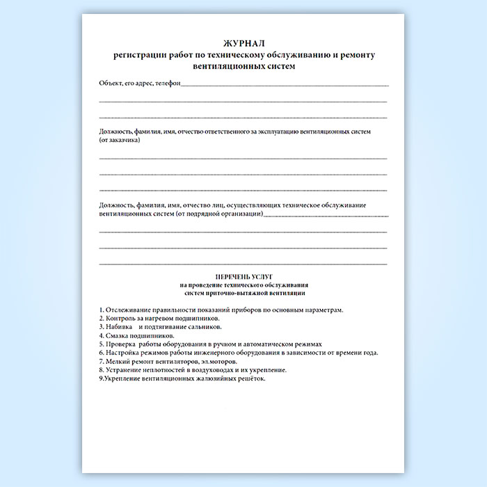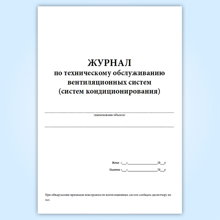 Журнал по техническому обслуживанию вентиляционных систем (систем кондиционирования) в Чите купить
