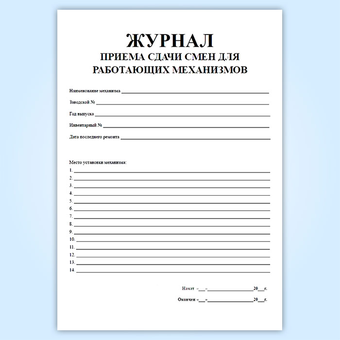 Журнал приема-сдачи смен для работающих на механизмах в Чите купить