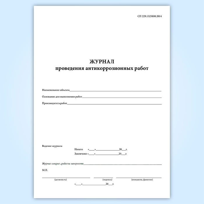 Журнал проведения антикоррозионных работ. СП 229.1325800.2014 в Чите купить