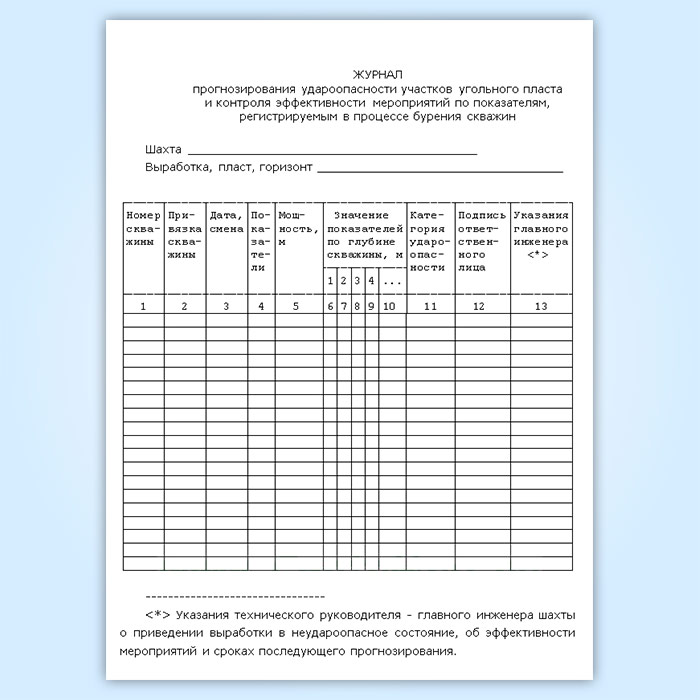 Журнал прогнозирования удароопасности участков угольного пласта и контроля эффективности мероприятий по показателям, регистрируемым в процессе бурения скважин в Чите купить