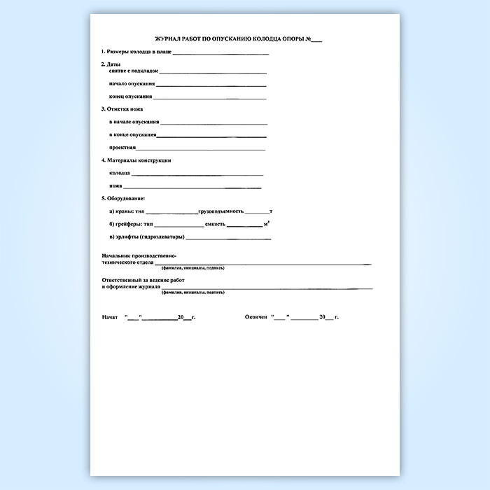 Журнал работ по опусканию колодца опоры в Чите купить