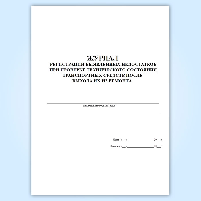 Журнал регистрации выявленных недостатков при проверке технического состояния транспортных средств после выхода их из ремонта в Чите купить