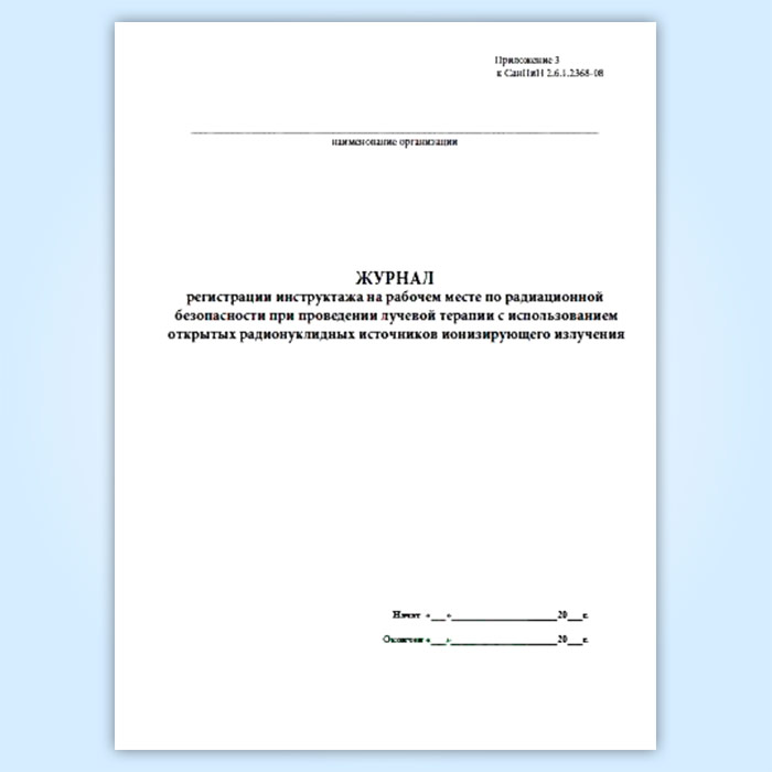 Журнал регистрации инструктажа на рабочем месте по радиационной безопасности при проведении лучевой терапии с использованием открытых радионуклиидных источников ионизирующего излучения в Чите купить