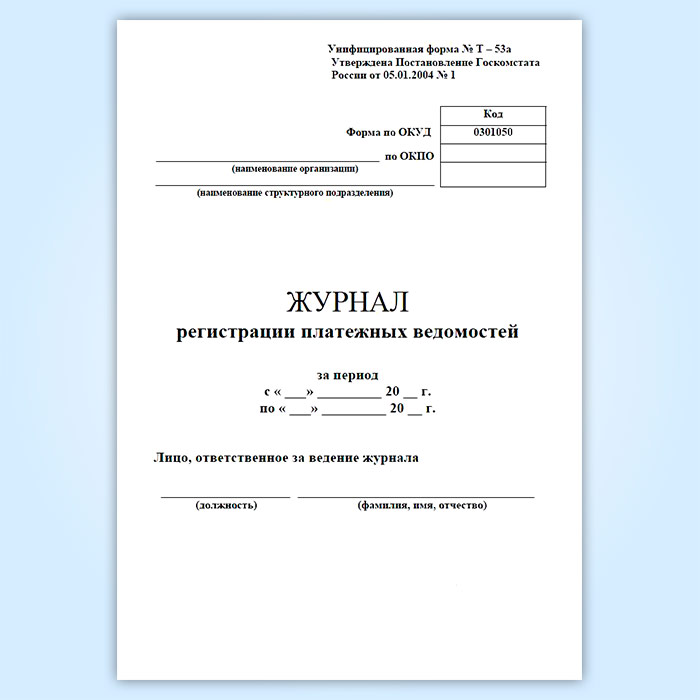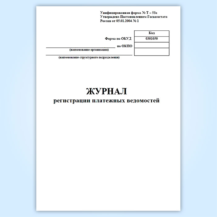 Журнал регистрации платежных ведомостей (унифицированная форма № Т-53а, форма по ОКУД 0301050) в Чите купить