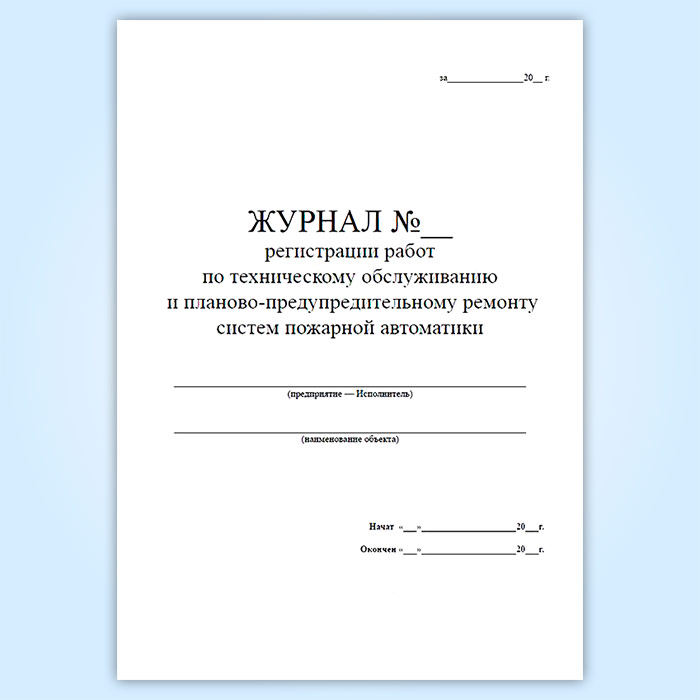 Журнал регистрации работ по техническому обслуживанию и планово-предупредительному ремонту систем пожарной автоматики в Чите купить