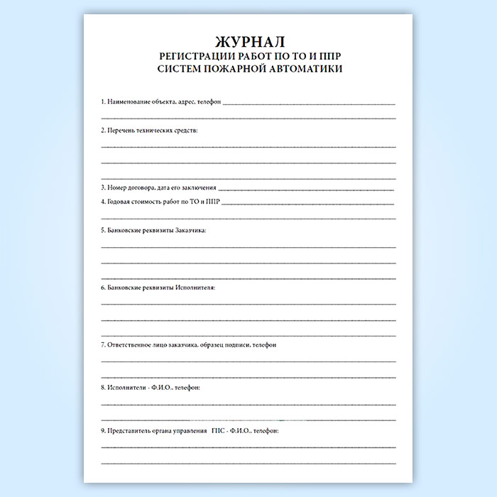 Журнал регистрации работ по ТО и ППР систем пожарной автоматики в Чите купить