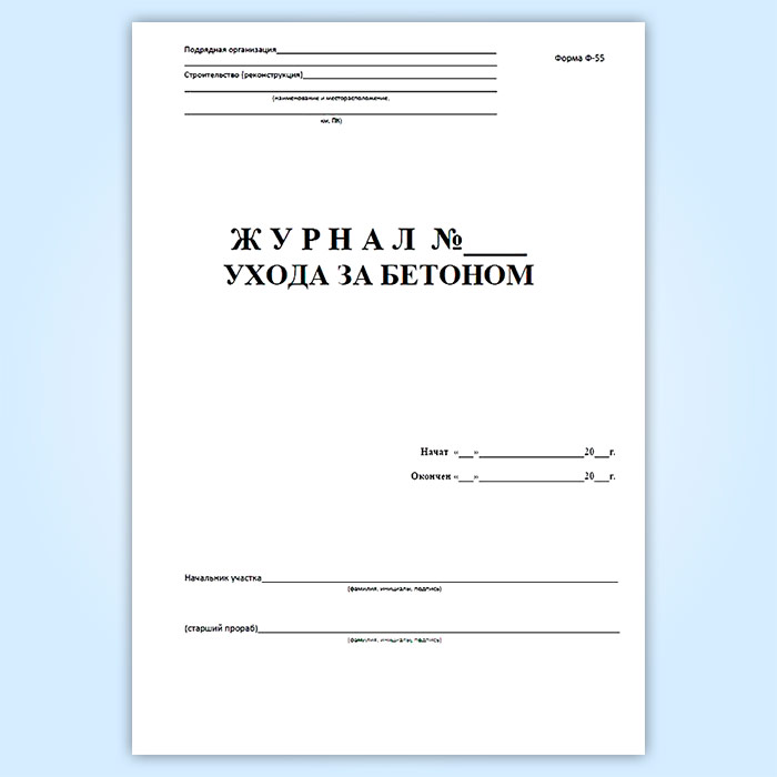 Журнал ухода за бетоном (форма Ф-55) в Чите купить