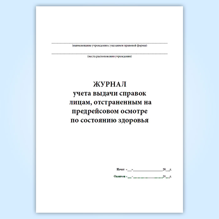 Журнал учета выдачи справок лицам, отстраненным на предрейсовом осмотре по состоянию здоровья в Чите купить