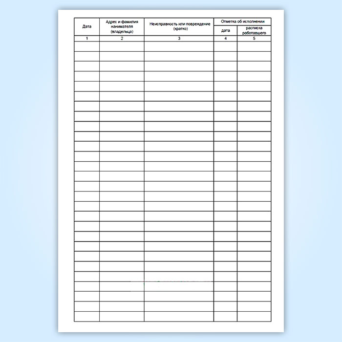 Журнал учета заявок населения на оперативное устранение неисправностей и повреждений инженерного оборудования в жилом доме (санитарно-технические работы) в Чите купить
