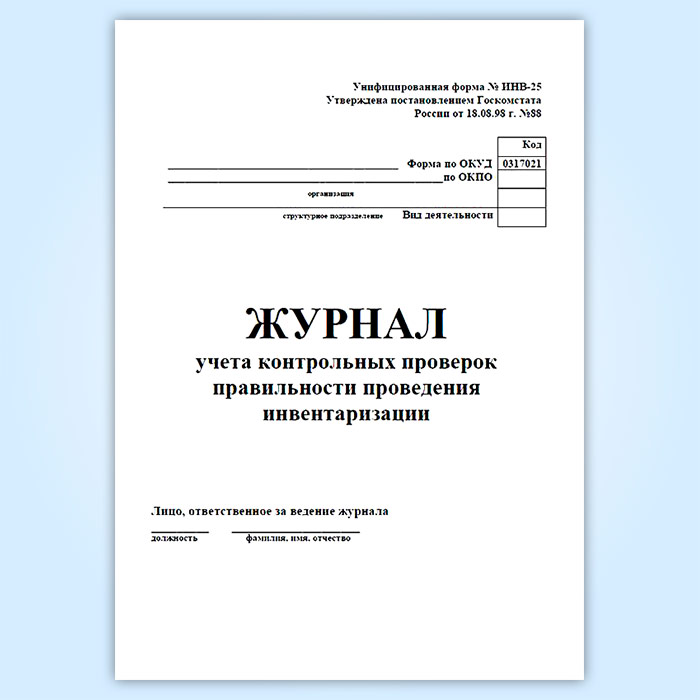 Журнал учета контрольных проверок правильности проведения инвентаризаций (форма ИНВ-25) в Чите купить
