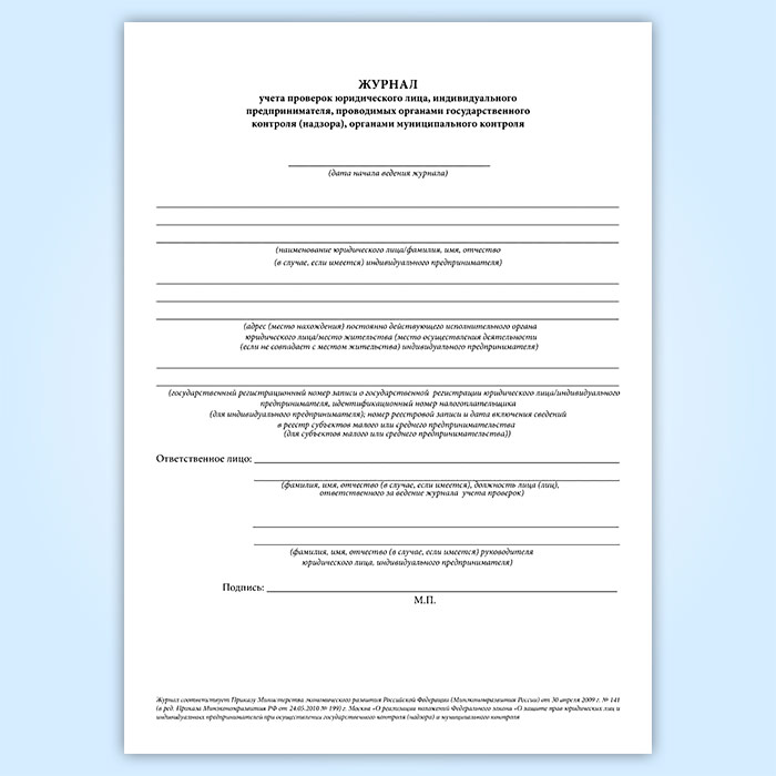 Журнал учета проверок юридического лица, индивидуального предпринимателя, проводимых органами государственного контроля (надзора), органами муниципального контроля (новый) в Чите купить