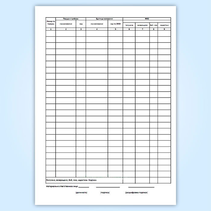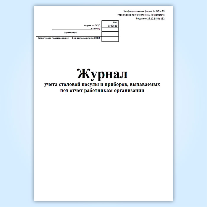Журнал учета столовой посуды и приборов, выдаваемых под отчет работникам организации (форма № ОП-19) в Чите купить