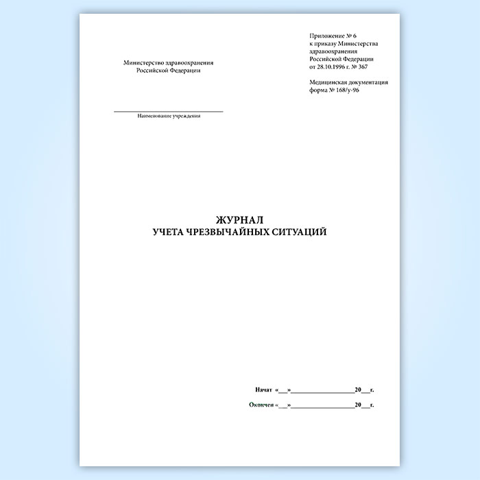Журнал чрезвычайных ситуаций (форма № 168/у-96) в Чите купить