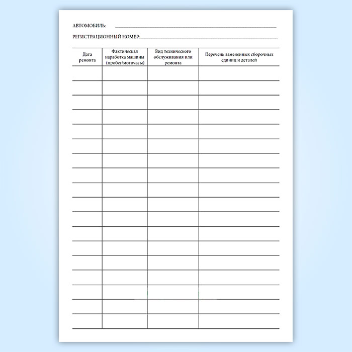 Карта ремонта автотранспортного средства в Чите купить