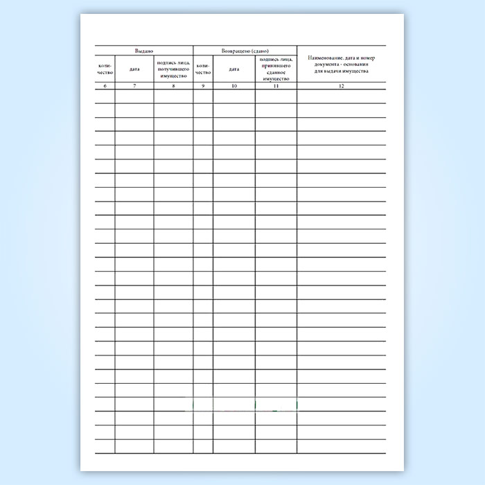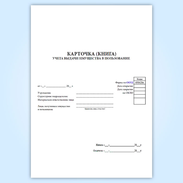 Карточка (книга) учета выдачи имущества в пользование (форма по ОКУД 0504206) в Чите купить