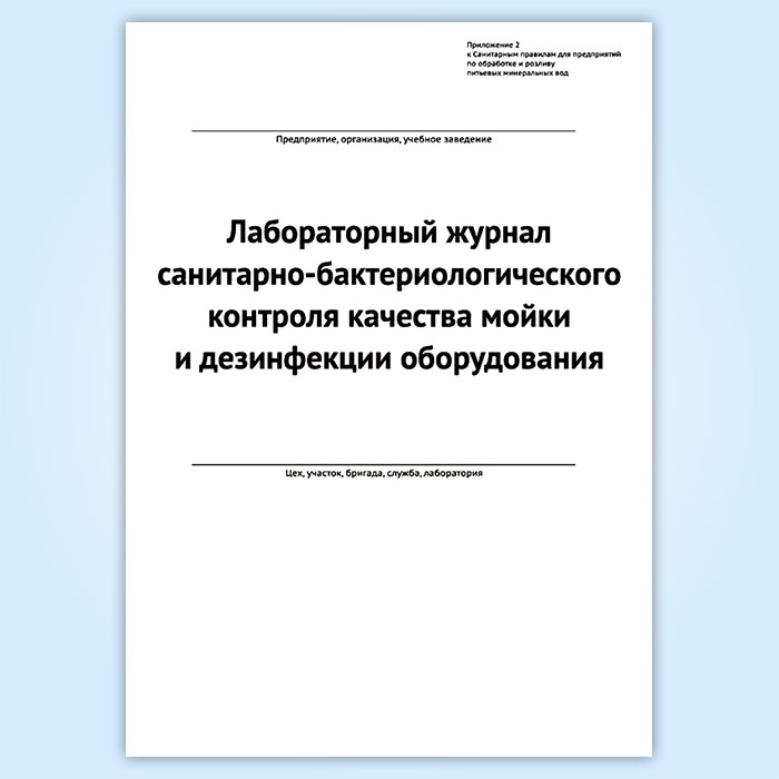 Лабораторный журнал санитарно-бактериологического контроля качества мойки и дезинфекции оборудования (форма 2) в Чите купить