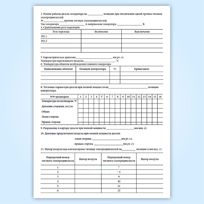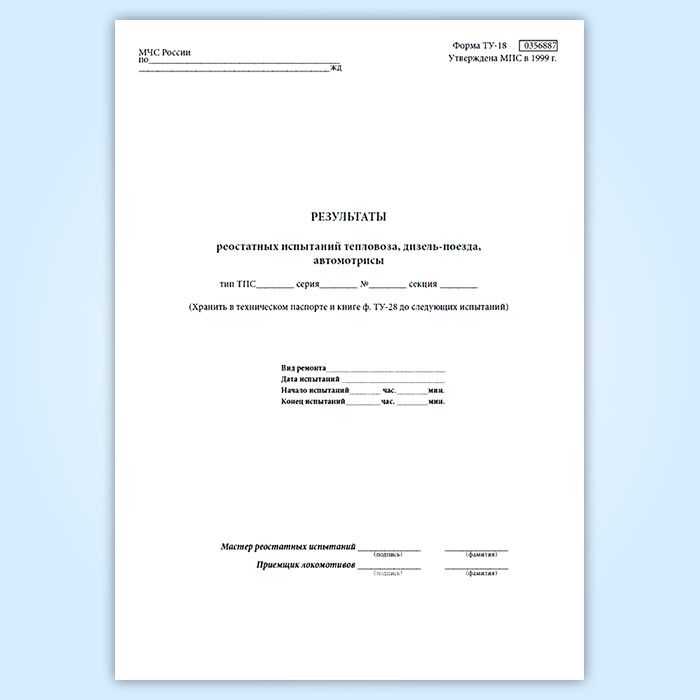 Результаты реостатных испытаний тепловоза, дизель-поезда, автомотрисы (форма ТУ-148) в Чите купить