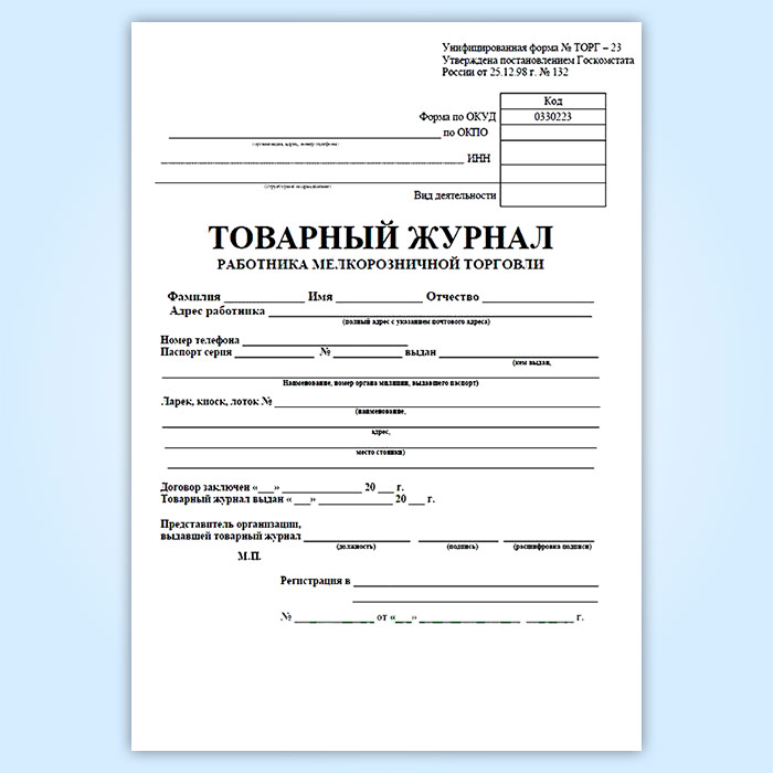 Товарный журнал работника мелкорозничной торговли (форма № ТОРГ-23) в Чите купить