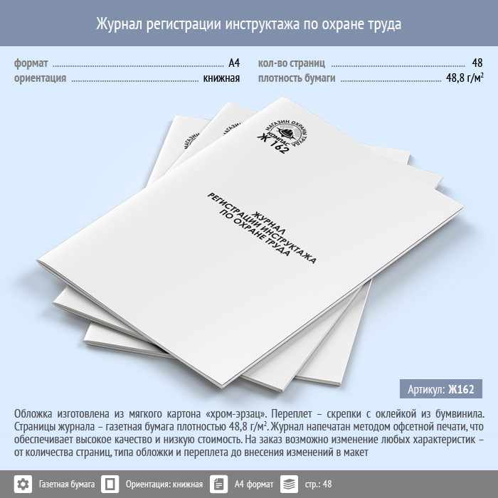 Журнал регистрации инструктажа по охране труда (48 стр., Ж162) в Чите купить