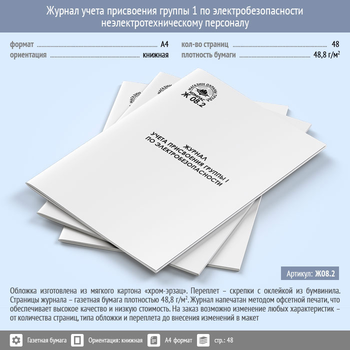 Журнал учета присвоения группы 1 по электробезопасности неэлектротехническому персоналу (48 стр., Ж08.2) в Чите купить