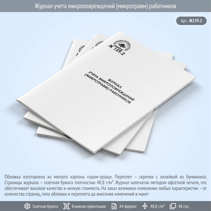Журнал учета микроповреждений (микротравм) работников (48 стр., Ж159.2) в Чите купить