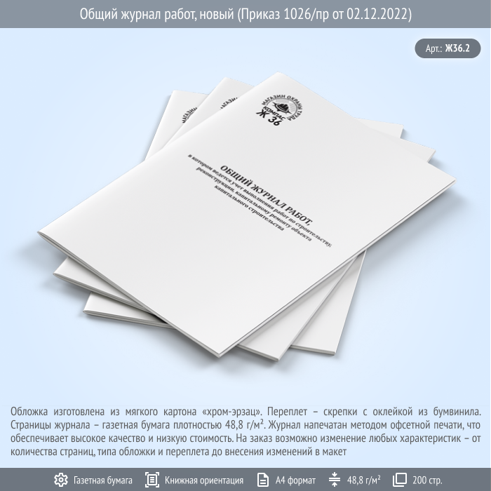 Общий журнал работ, новый (Приказ 1026/пр от 02.12.2022, 200 стр., Ж36.2) в Чите купить
