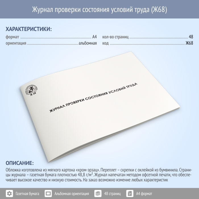 Журнал проверки состояния условий труда (48 стр., Ж68) в Чите купить