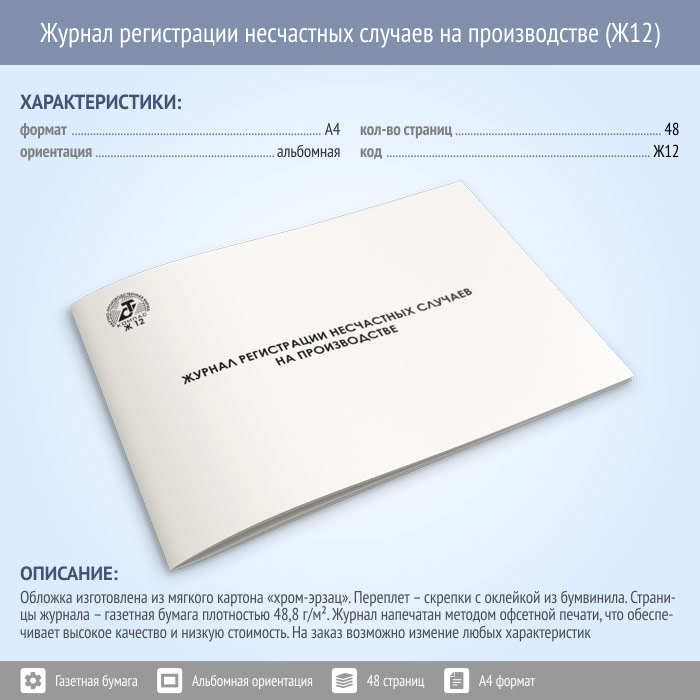 Журнал регистрации несчастных случаев на производстве (48 стр., Ж12) в Чите купить
