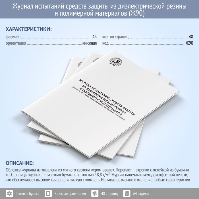 Журнал испытаний средств защиты из диэлектрической резины и полимерных материалов (48 стр., Ж90) в Чите купить