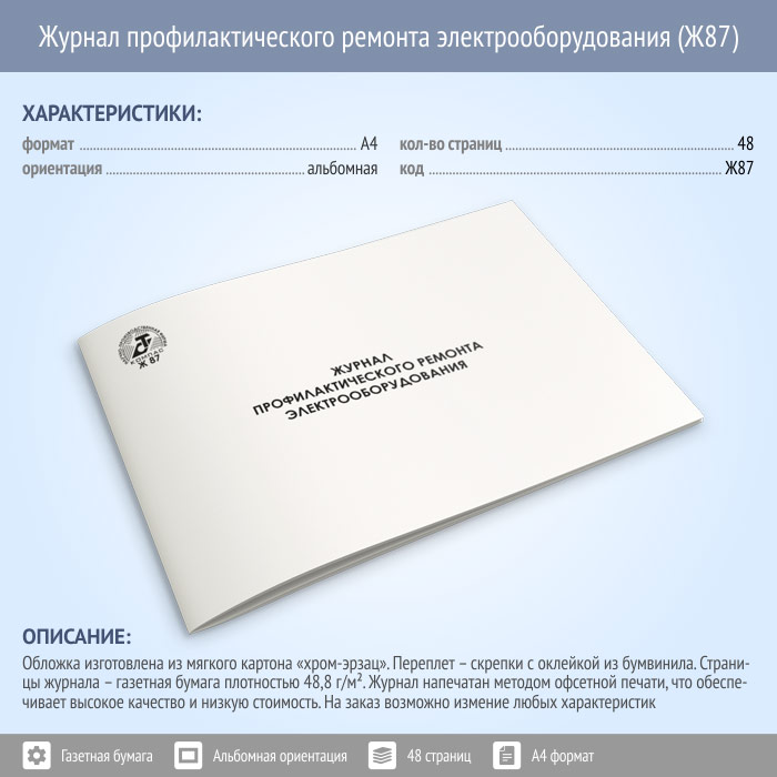 Журнал профилактического ремонта электрооборудования (48 стр., Ж87) в Чите купить