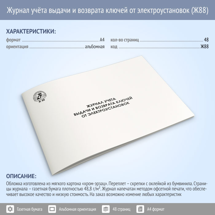 Журнал учета выдачи и возврата ключей от электроустановок (48 стр., Ж88) в Чите купить